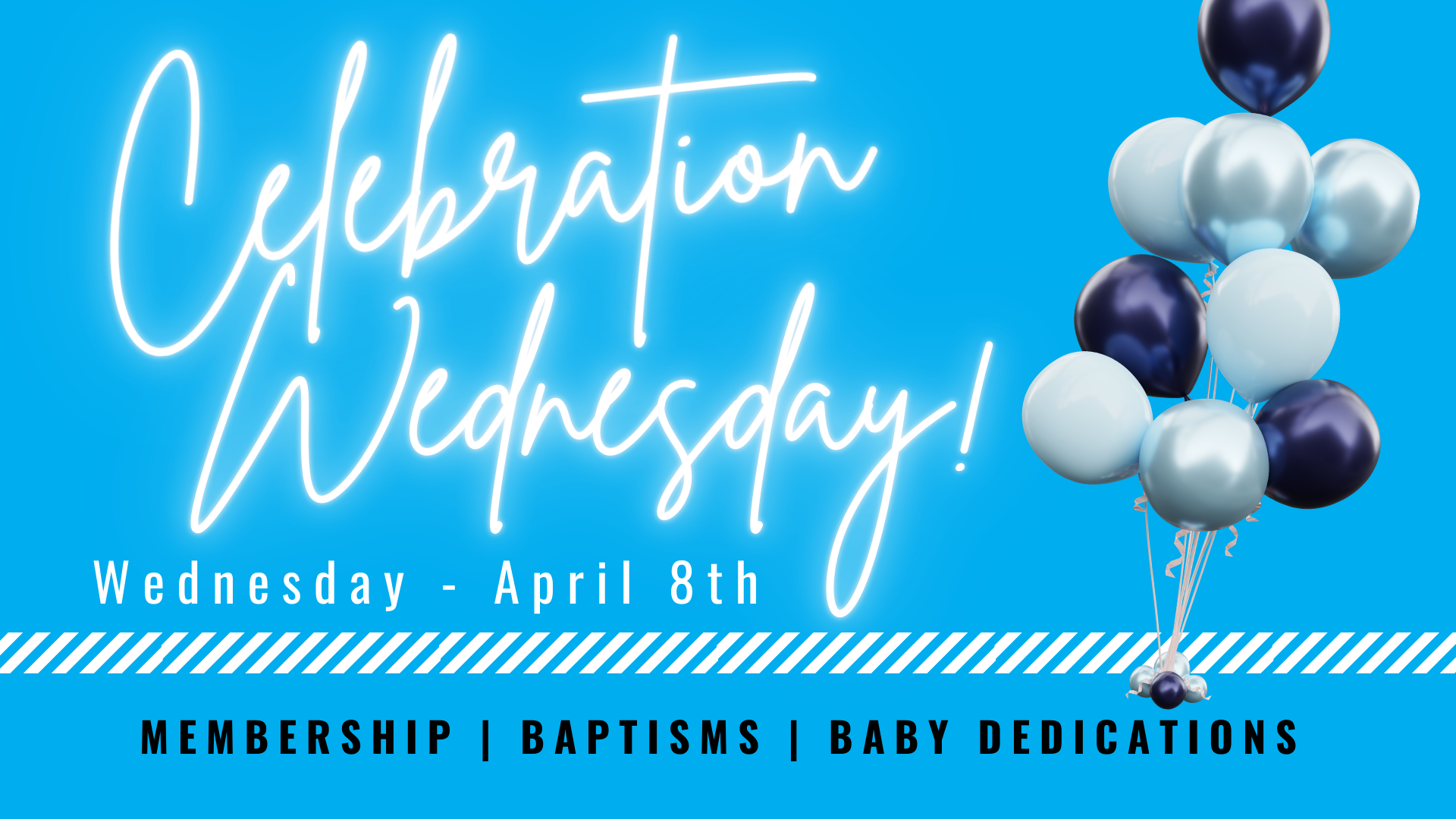 Celebration Wednesday + Add to Google Calendar + iCal / Outlook export 00 days 00 hours 00 minutes 00 seconds Date Apr 08 2026 Time 6:30 pm - 7:45 pm More Info Register Category Churchwide Register Share this event