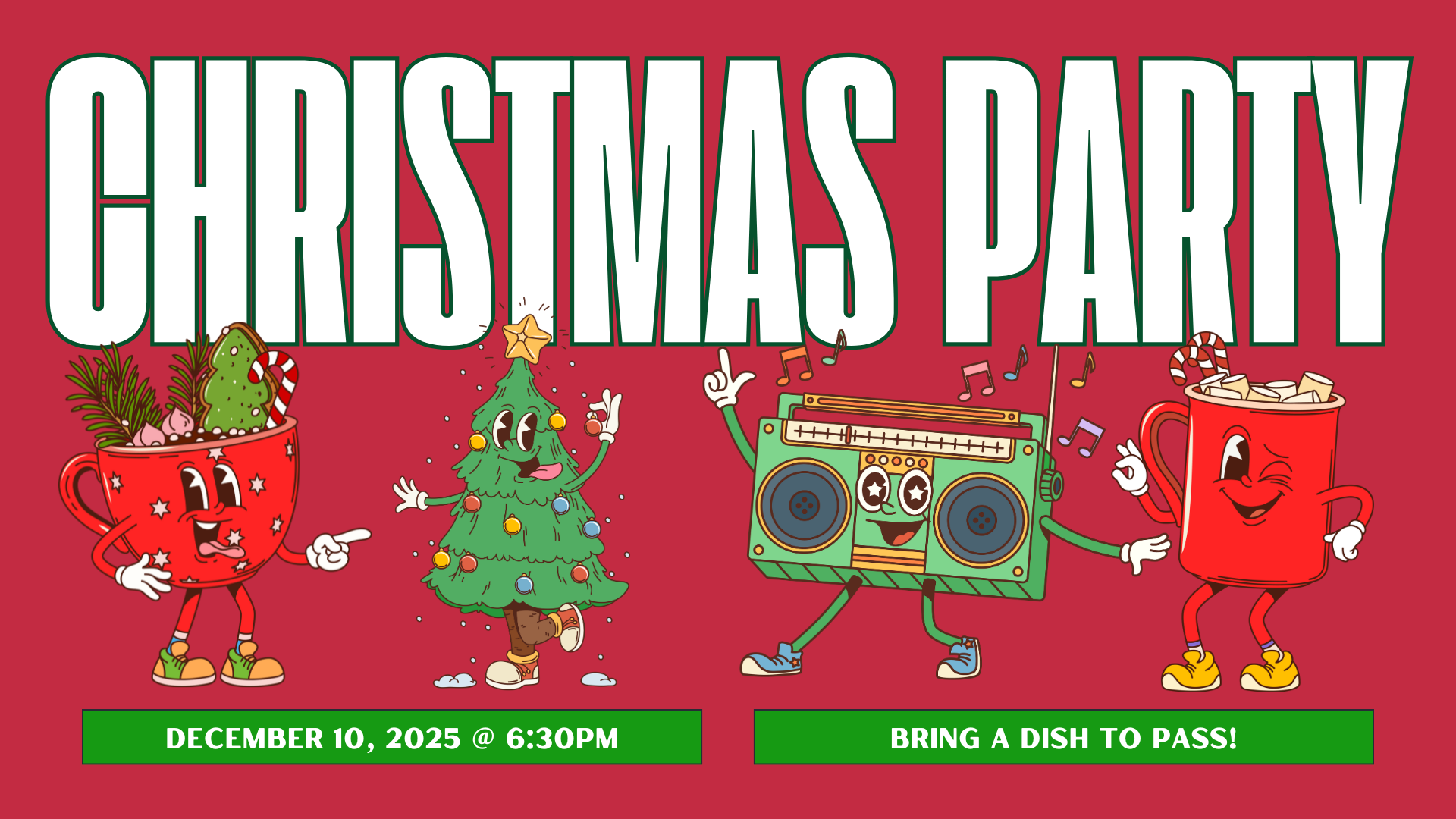 River All-Church Christmas Party Bring a dish to pass! + Add to Google Calendar + iCal / Outlook export Date Dec 10 2025 Expired! Time 6:30 pm - 7:45 pm Category Churchwide Share this event